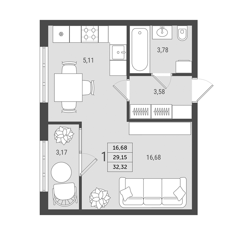 Площадь: от 32,32 м2
