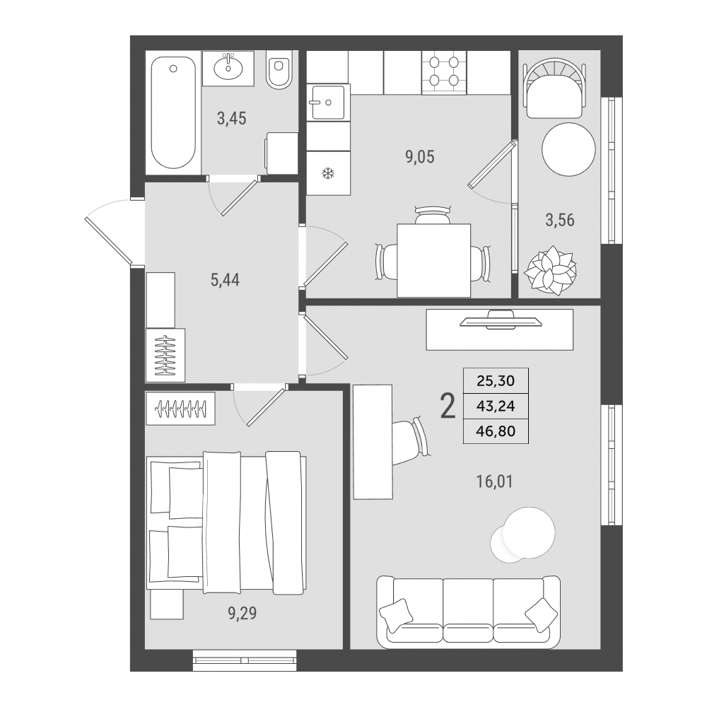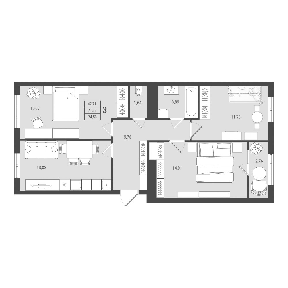 от однокомнатных до трёхкомнатных,